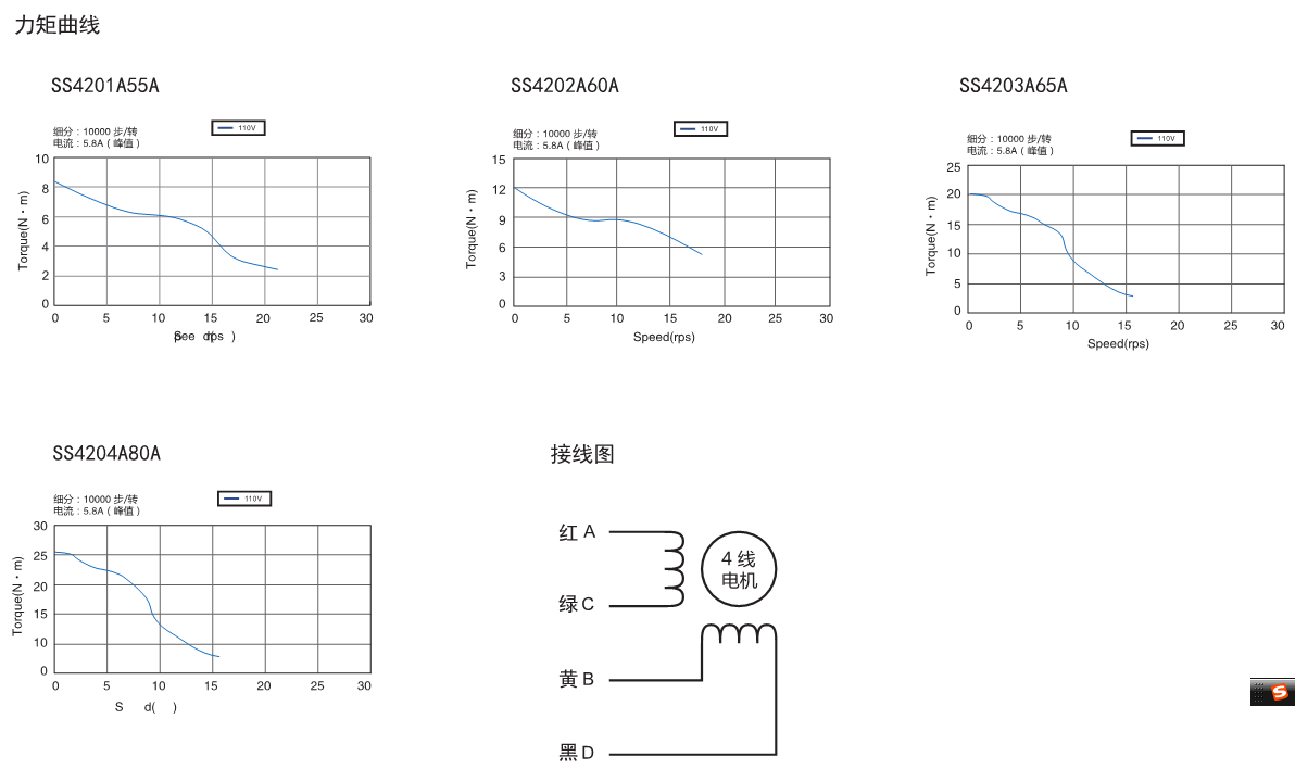 標準混合式110mm步進電機SS4204A80A選型參數表: