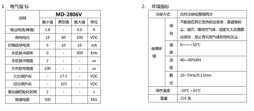 ■兩相步進電機驅動器MD2806V性能指標