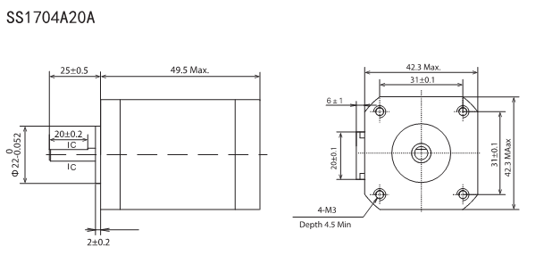 42mm二相步進電機,型號:SS1704A20A,力矩從:0.262N.m-0.54N.m,定位精度高,輸出力矩高,響應頻率高,運行噪音低,動態特性好,CE認證。
